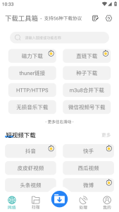 下载工具箱app是一款支持56种下载协议的安卓万能下载工具,下载工具箱最新版主要提供网络视频解析下载,资源嗅探下载,以及本地视频扫描提取功能,同时提供不常见的视频编辑功能。