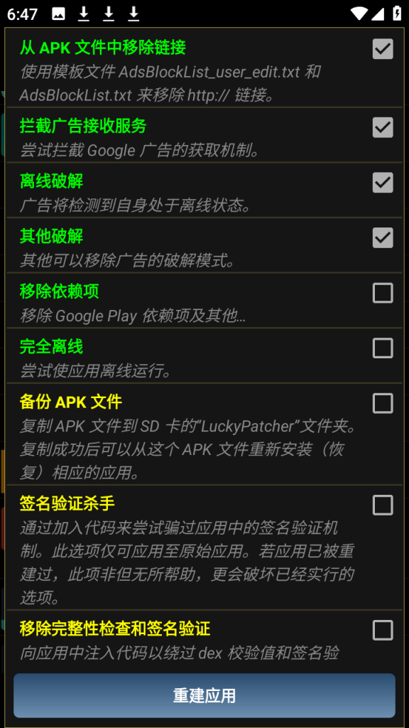 – 支持自定义破解、移除Google授权验证、移除Google广告三种破解方式