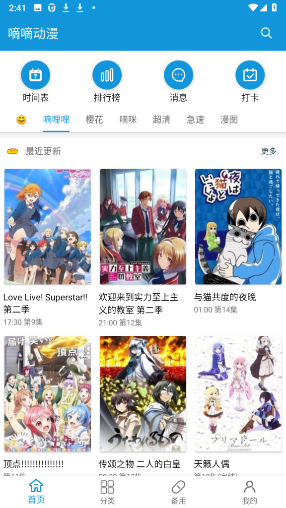 嘀嘀动漫app是专门为漫迷们提供的一款动漫追番利器,整合了嘀哩嘀哩和樱花动漫量大动漫平台的视频资源,因此资源十分丰富,其涵盖日漫、国漫、欧美漫、后宫、热血、同人、治愈、动漫电影等多种类型的资源,可以很好的满足用户们的观看需求。同时该软件中所有提供的动漫都是支持在线免费观看、离线缓存、无线投屏等功能,想怎么看就这么看,轻松陪伴用户度过每一刻闲暇时光。嘀嘀动漫还制作了动漫更新时间表,详细的为用户们罗列出了周一到周日每天的动漫更新源,不过总是会忘记更新时间的话,那你也可以直接设置更新提醒,这样动漫更新了系统就会在第一时间通知你啦,精彩内容不再怕错过。