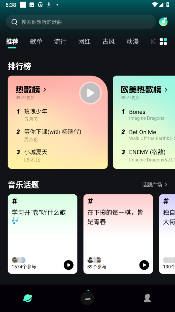 3千万曲库,流行、网红、古风、动漫、怀旧金曲、摇滚、电音、说唱、民谣、日语、欧美、韩语,所有歌曲应有尽有;陈奕迅、林俊杰等大咖全部网罗;